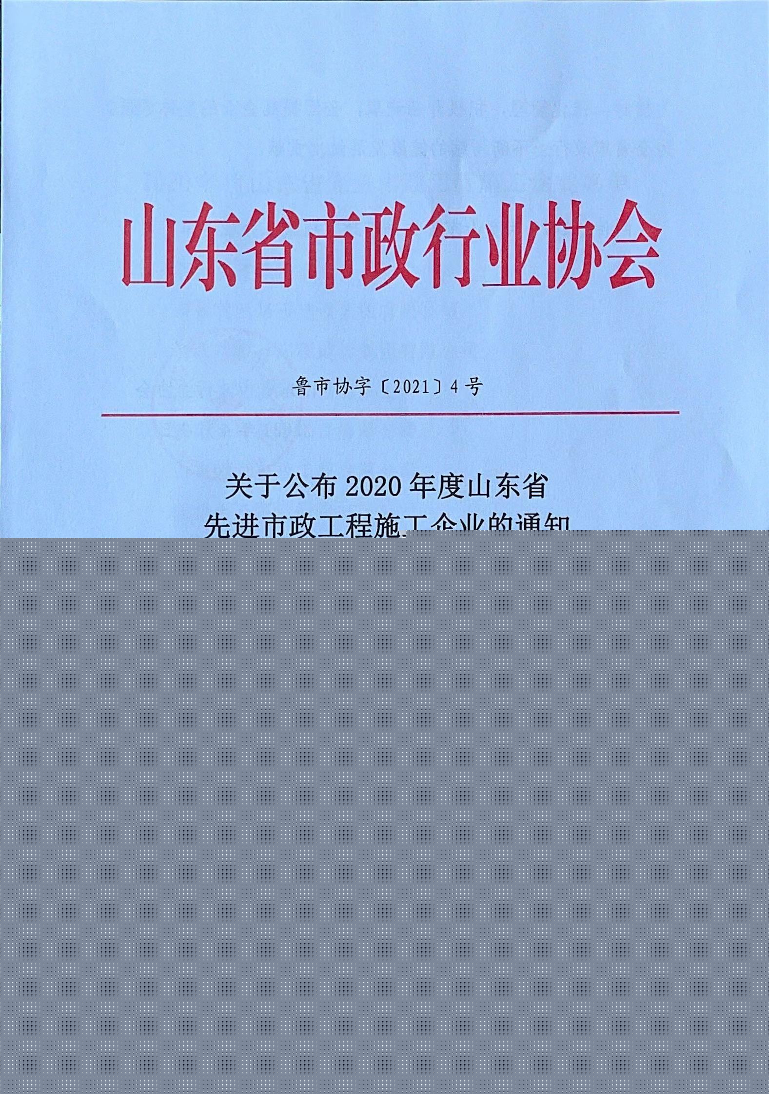 日前,2020年度山東省**市政工程施工企業名單公布,我公司等55家單位榜上有名。 此次評選,是山東省市政行業協會根據《山東省**市政工程施工企業評選辦法》相關標準,結合企業業績及鼓勵中小企業盡快發展的原則組織進行的,三年一屆。隨著此次山東省**市政工程施工企業榮譽的獲得,我公司自企業改制以來,獲得的市政行業同類省級殊榮已增至5項。